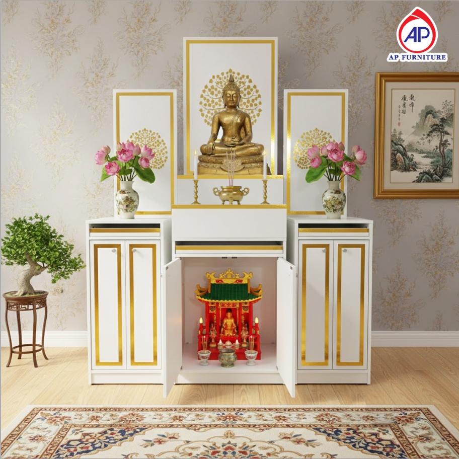 ⭐️ ตู้พระสไตล์โมเดิร์น ผลิตจากไม้ปาติเกิลหน้า 16 มิลลิเมตร ปิดผิวฟลอยด์ เซ็ดทำความสะอาดด้วยผ้าหมาดได้ แต่แช่น้ำไม่ได้นะคะ