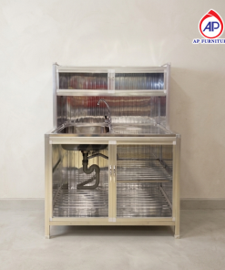 ตู้เคาน์เตอร์อ่างซิงค์ อ่างสแตนเลส ขามิเนียมขาว (โครงเหล็ก) K-1077