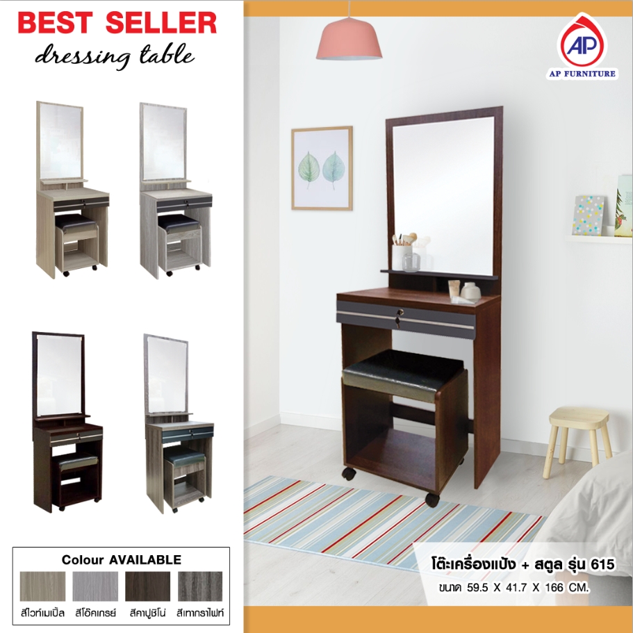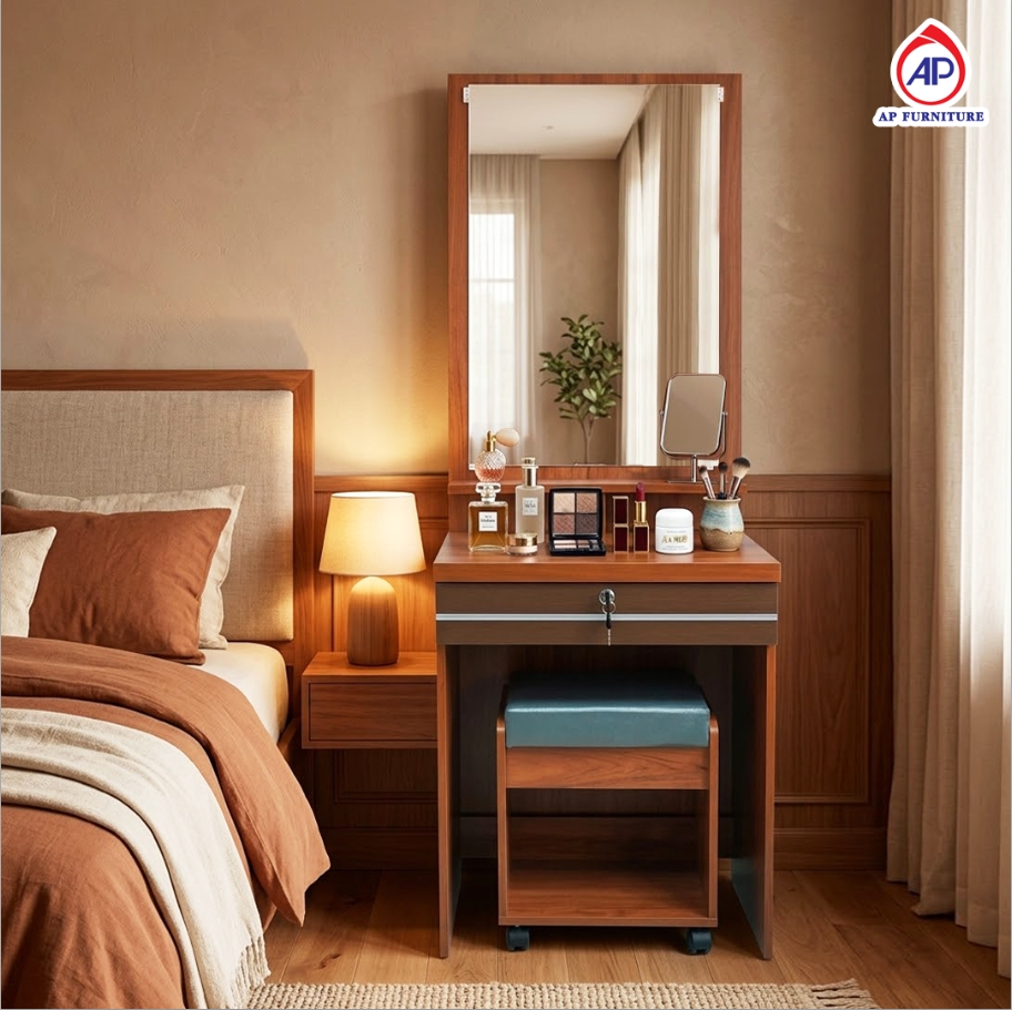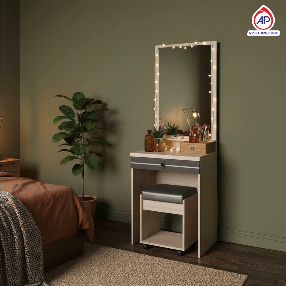 โต๊ะเครื่องแป้ง พร้อมสตูลมีล้อเลื่อน